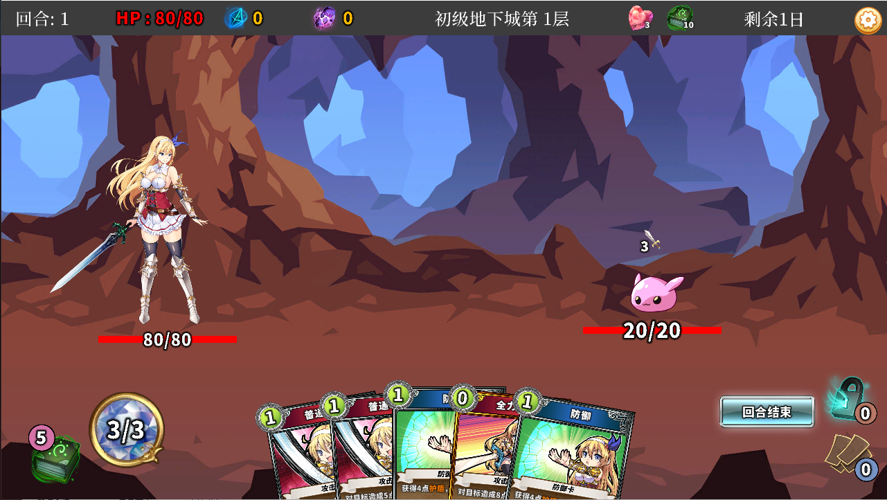 战斗中随机发放卡牌,选择最合适的卡牌打倒强敌吧!